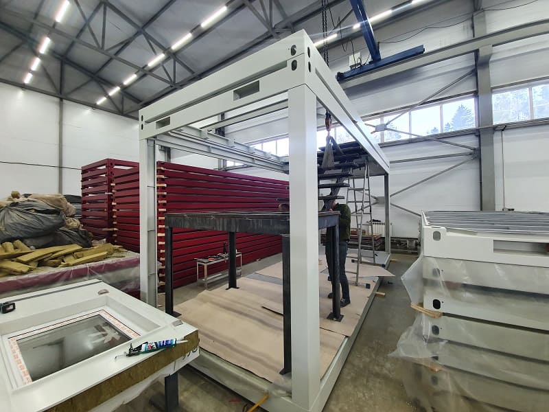 Комплект поставки содержит здание, кровли и инженерные системы. Форма поставки — модули в транспортной форме EasyPack, комплектация — в морских контейнерах.