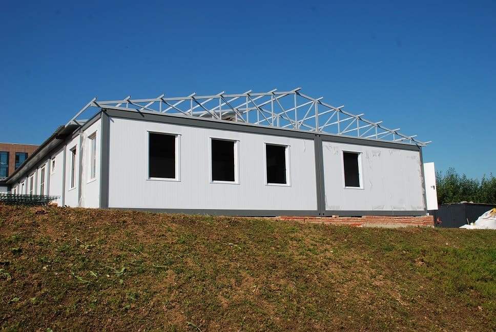 У Заказчика есть модульное офисное здание, производства КССК-МО. Задача заключалась в том, чтобы увеличить площадь офиса путем добавления блок-контейнеров и достройки общей кровли здания.